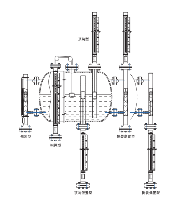 液位計(jì)的測(cè)量范圍為兩個(gè)連接法蘭的中心距(頂裝型除外),其中下連接法蘭的中心即為儀表指示的零點(diǎn);