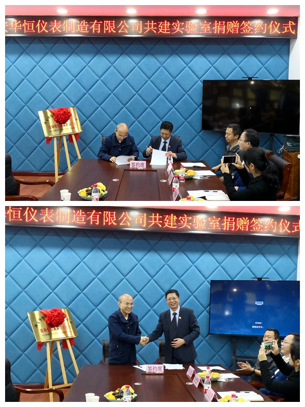 捐贈(zèng)簽約儀式于2020年9月17日16:00在哈爾濱理工大學(xué)舉行,出席捐贈(zèng)簽約儀式的有:西安華恒儀表制造有限公司總工周衛(wèi)東、顧問田皋林、技術(shù)總監(jiān)王志剛,測(cè)控技術(shù)與通信工程學(xué)院院長(zhǎng)范劍英、書記顧大興、副院長(zhǎng)楊明極、副院長(zhǎng)吳海濱、副書記田海燕、實(shí)驗(yàn)中心主任羅中明、測(cè)控技術(shù)儀器系主任蓋建新、實(shí)驗(yàn)中心副主任陳寶遠(yuǎn)和學(xué)生代表。捐贈(zèng)簽約儀式由副院長(zhǎng)楊明極主持,西安華恒儀表制造有限公司總工周衛(wèi)東和測(cè)通學(xué)院院長(zhǎng)范劍英分別進(jìn)行了講話,最后學(xué)院領(lǐng)導(dǎo)陪同西安華恒儀表制造有限公司貴賓參觀了學(xué)院國(guó)家級(jí)實(shí)驗(yàn)教學(xué)示范中心。