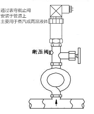 1.壓力變送器直接安裝于管道之上,中間加裝截止閥,主要用于氣體測量。
