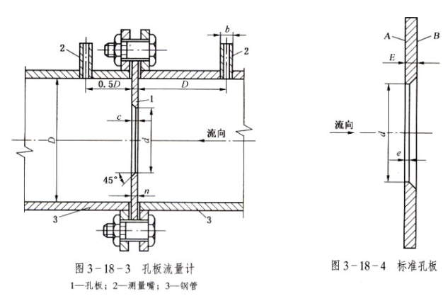 孔板流量計有孔板、取壓嘴和鋼管組成,安裝過程中,應(yīng)注意孔板的安裝方向,具體如圖所示。