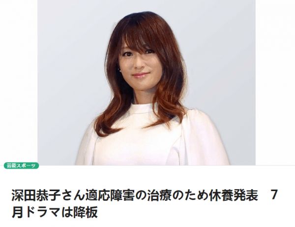 根據(jù)《女性SEVEN》周刊稱,深田恭子在去年春天身體出狀況,這個(gè)月被醫(yī)師診斷有適應(yīng)障礙的癥狀,她原本敲定要拍富士電視臺(tái)7月檔的電視劇,開拍前10天臨時(shí)宣布暫停演藝活動(dòng),劇組臨時(shí)要找人替代女主角十分困難,即便如此,經(jīng)紀(jì)公司仍決定讓深田恭子停工,想必狀況不輕。