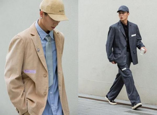 微寬松墊肩版型的西服,本身款式就偏休閑,符合當(dāng)下潮流趨勢的同時也很好搭配,不會像正統(tǒng)西服那樣一本正經(jīng)顯得老氣。