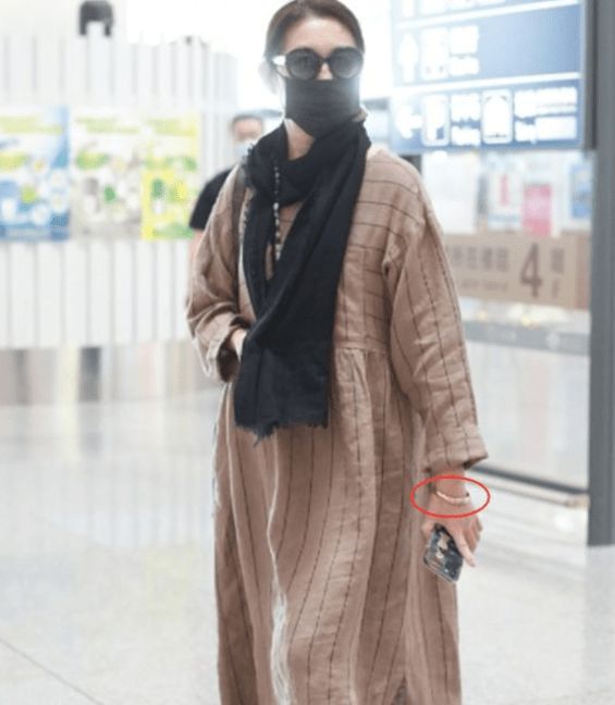 她背上的包是某高級品牌的古典款,在網(wǎng)上查詢近4萬元,價格不便宜。仔細看,她的左手戴著金手鐲,右手戴著金戒指,整體形狀相當昂貴。但是,長裙在她身上看起來很寬松,袖口上她的胳膊只占了一半的空間,走路時露出的腳踝也很細。她的身體很瘦,肩膀窄得撐不住衣服,很疼。