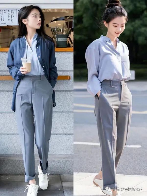 與此同時(shí),還可以通過這種整潔的長褲搭配來體現(xiàn)高級(jí)感,配上襯衣、高跟鞋,時(shí)尚度蹭上去!