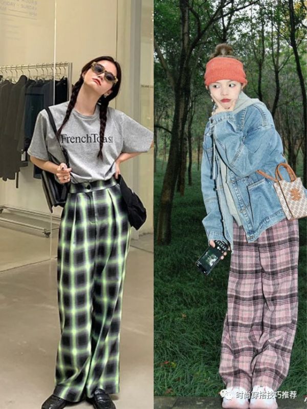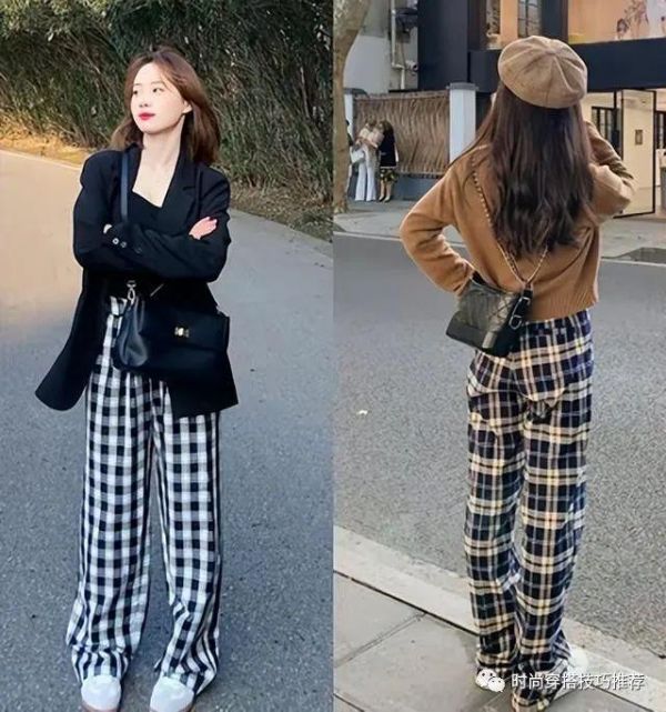 搭配的闊腿格子褲也是修身遮肉的利器,再搭配休閑牛仔夾克、毛衣和各種配飾,體現(xiàn)出精致的搭配感,過于時(shí)尚。
