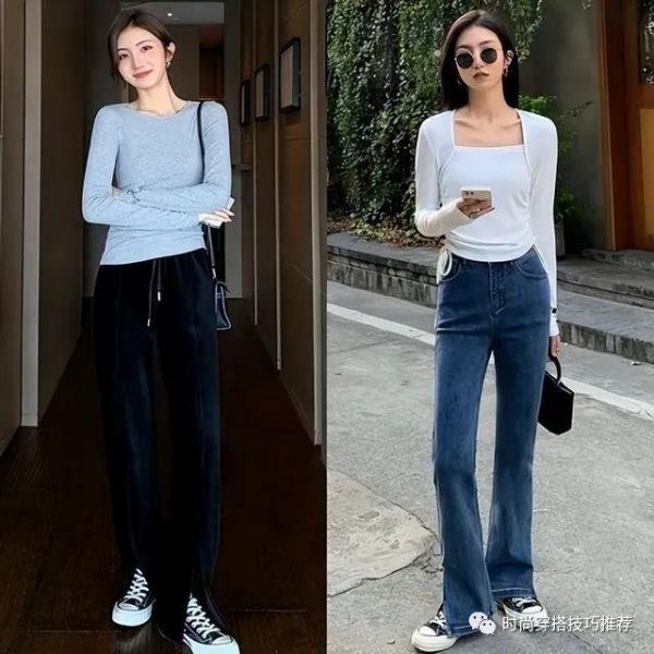 開叉的高度不需要太夸張,從腳踝開叉就可以了,時(shí)尚整潔。這種褲子也很百搭,搭配運(yùn)動(dòng)鞋和高跟鞋都很時(shí)尚,看你怎么搭配。
