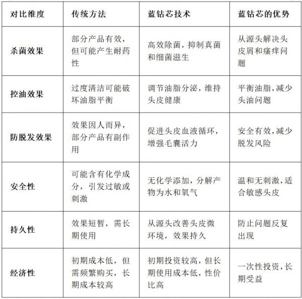 藍(lán)鉆芯技術(shù)與傳統(tǒng)頭部護(hù)理方法的對(duì)比