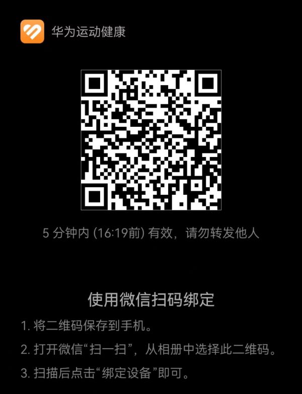 保存當(dāng)前這個(gè)二維碼,然后打開微信掃一掃功能,點(diǎn)擊 相冊(cè)圖標(biāo)掃描相冊(cè)圖片 > 選擇剛剛保存的二維碼圖片 > 掃描后彈出“華為運(yùn)動(dòng)健康”公眾號(hào),點(diǎn)擊“綁定設(shè)備”進(jìn)行綁定。