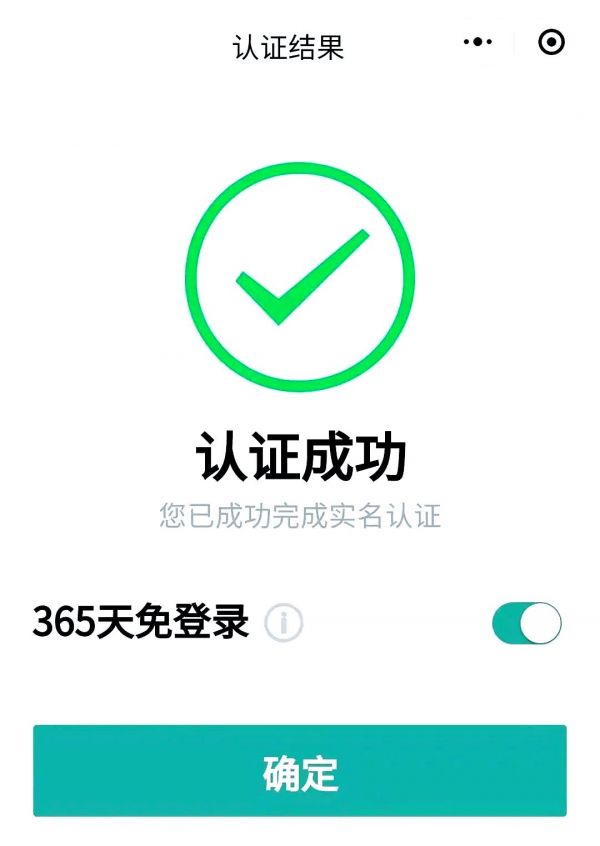 成功通過實名信息驗證后,點擊“確定”按鈕,以完成整個認證流程。