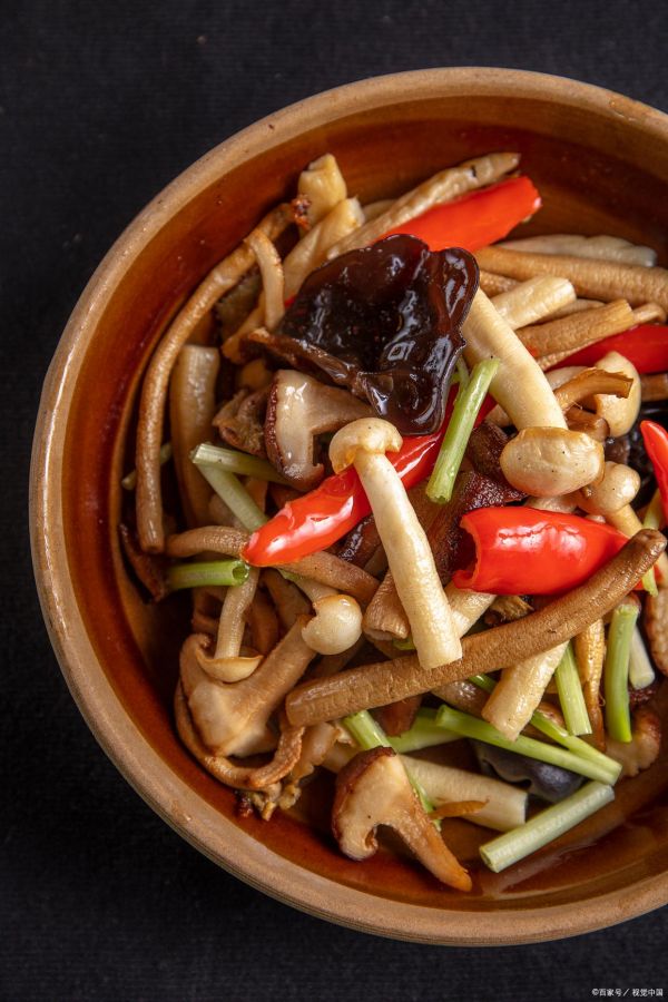 在菌菇上撒上干辣椒段、花椒、蒜末,淋上熱油,隨著 “滋滋” 的聲響,麻辣香味瞬間被激發(fā)出來,最后撒上少許香菜點綴。