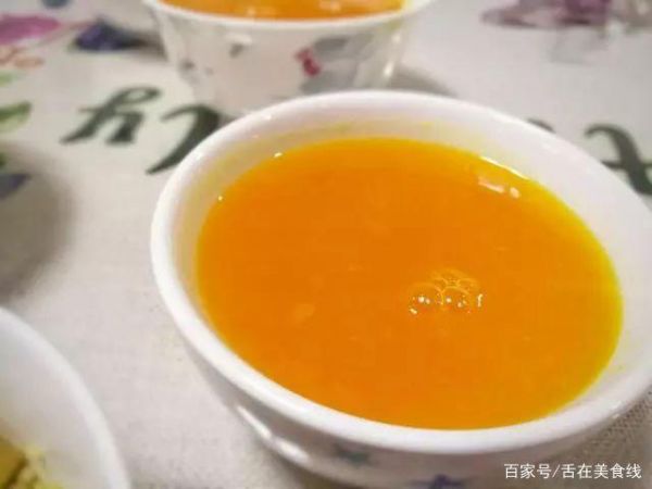 一塊南瓜去皮去瓤,切塊蒸熟打碎,記得加一點(diǎn)水。小鍋里倒入南瓜泥,加適量的水,加糖,開始煮吧,水溫?zé)岬臅r候倒入水淀粉。水淀粉就是淀粉用冷水?dāng)嚢杈鶆颍@個喜歡粘稠的可以稍微多放一點(diǎn),起碼要比做菜放的多一些啊。開鍋就可以了,一碗香甜的南瓜粥就好了了,是不是太簡單了。