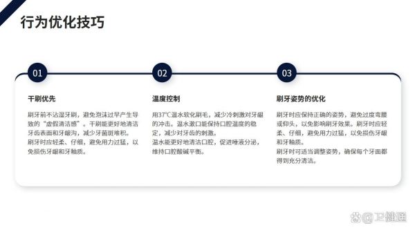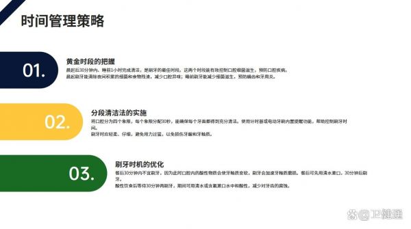 - 使用計(jì)時(shí)器或電動(dòng)牙刷內(nèi)置提醒功能,控制單次刷牙時(shí)間為2分鐘。