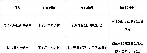 然而,陶瓷杯內(nèi)壁通常覆蓋一層釉,這種釉是由鉻、釩、錳、鐵、鈷、鎳和銅等金屬氧化物精心調(diào)配而成的。由于陶瓷杯含有鉛等重金屬,釉面在酸堿飲料中可能遷移,圖案中的重金屬也可能對人體健康構(gòu)成潛在威脅。