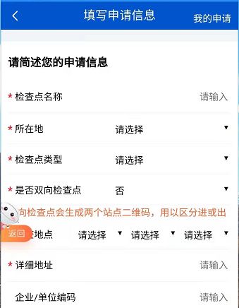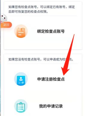 進(jìn)入首頁(yè),點(diǎn)擊“安康碼”進(jìn)入安康碼專題頁(yè),點(diǎn)擊“安康碼核驗(yàn)”后,選擇“申請(qǐng)注冊(cè)檢查點(diǎn)”,根據(jù)頁(yè)面選項(xiàng),填寫(xiě)申請(qǐng)信息后,上傳憑證,點(diǎn)擊提交后完成申領(lǐng)?!白?cè)檢查點(diǎn)”申請(qǐng)界面圖示如下: