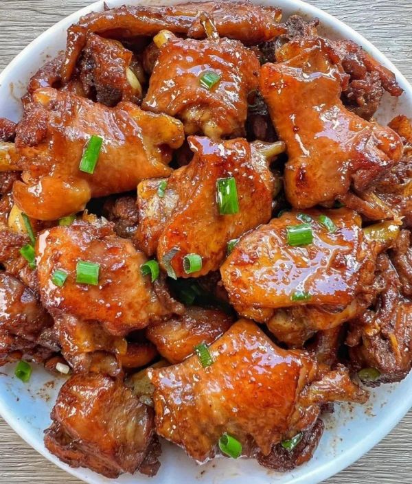 3、最后倒入腌制雞翅剩下的料汁,再稍微加點水,小火燜煮15分鐘,撒點蔥花起鍋。因為煮的時間夠久,雞翅特別的軟爛易嚼,骨肉容易脫離,特好吃。