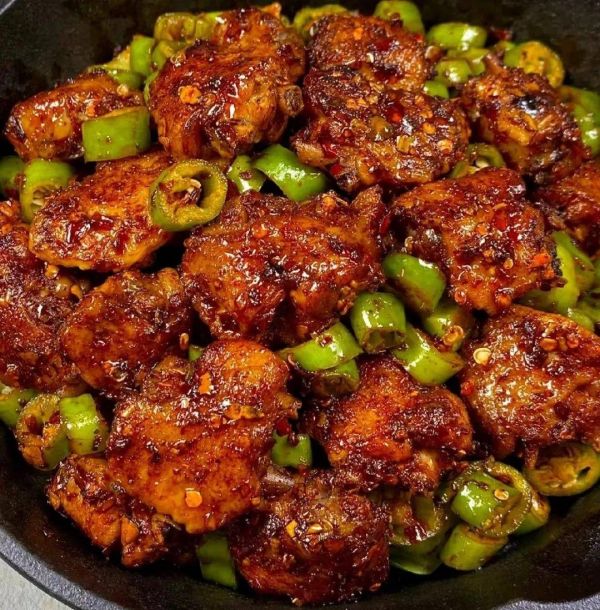3、最后撒入切碎的青色小米椒,稍微炒個30秒鐘就可以起鍋。喜歡吃辣的朋友,可以將雞翅這樣做,香辣開胃,好吃下飯。