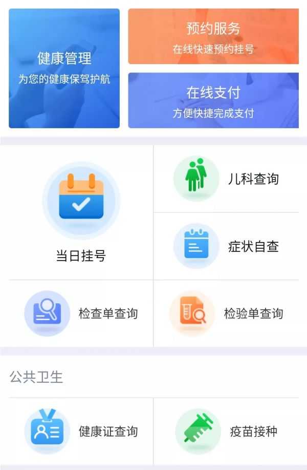 3、 操作完成后,便可通過(guò)手機(jī)進(jìn)行當(dāng)日掛號(hào)、預(yù)約服務(wù)、在線(xiàn)支付、查詢(xún)報(bào)告單等。