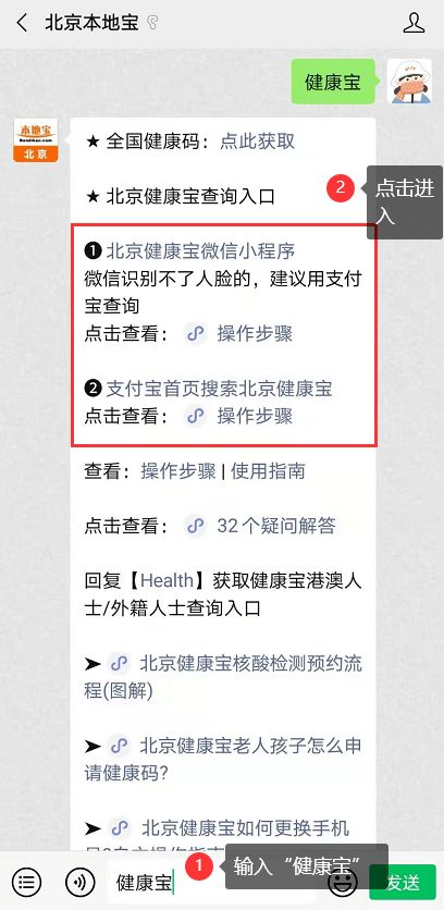 在聊天對話框內(nèi)回復(fù)“ 健康寶