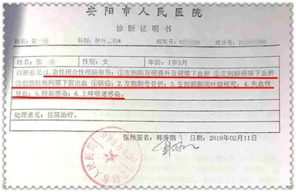 女兒意外摔傷導致腦部重創(chuàng)