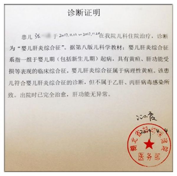 這位父親感覺很莫名,因為在他印象中,女兒并沒有過得過"肝炎",于是親自到孩子出生時的湖北省婦幼保健院了解情況,這才知道原來嬰兒肝炎綜合征指的是新生兒病理性黃疸。