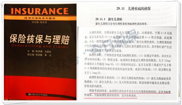 《保險核保與理賠》一書中寫的很明確,對于新生兒黃疸的核保,要判斷是否為病理性黃疸,如果是病理性的,原因是什么?是否是核黃疸(也就是膽紅素腦?。??