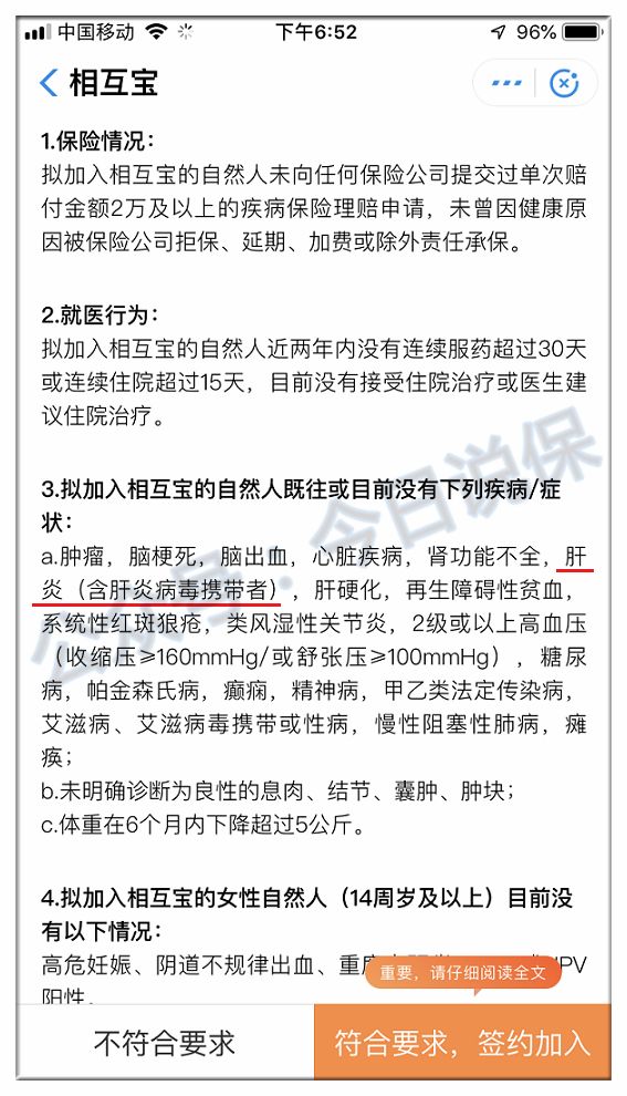 在相互寶的健康告知中有這么一條"擬加入相互寶的自然人既往或目前沒有下列疾病/癥狀:a.……肝炎(含肝炎病毒攜帶),……"。