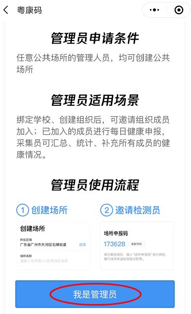 進入“粵省事”小程序,粵康碼首頁---公共場所---我是管理員進行場所創(chuàng)建: