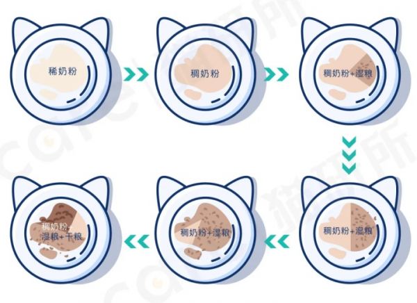 準(zhǔn)備一個淺淺的盤子,倒入配方奶,讓小貓自己從盤子中采食,然后逐漸把配方奶增稠,等到小貓習(xí)慣之后,在盤子中同時加入配方奶和濕糧,如果以后準(zhǔn)備用干糧喂養(yǎng),那么習(xí)慣濕糧后,可以再添加干糧。