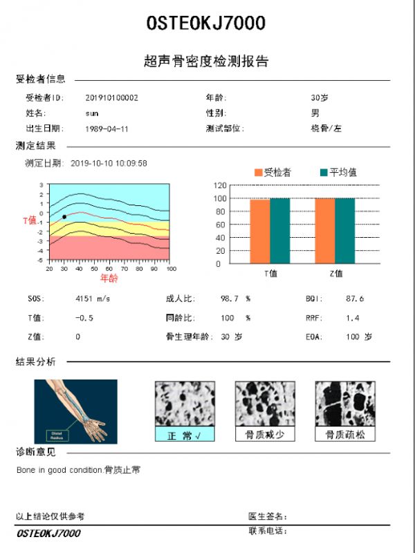 南京科進(jìn)骨密度檢測儀廠家介紹:相信做過骨密度檢測的人應(yīng)該會對“T值”和“Z值”有所印象。一般情況下,骨密度檢測結(jié)果往往以“圖片+表格”的形式給予反饋:“圖片”直觀展示的是被檢者的骨密度數(shù)值位于中國男(女)性骨密度參照曲線圖的具體位置;“表格”直接列出T值和Z值的數(shù)值。