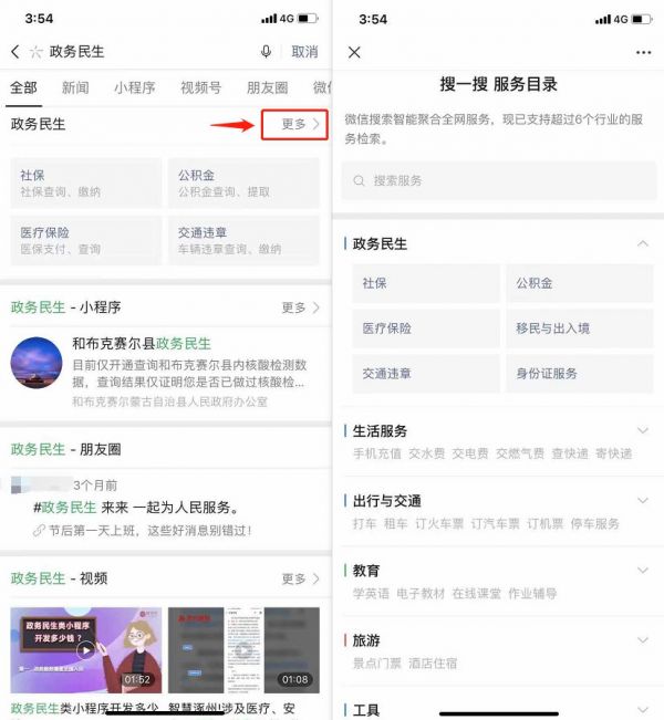 方法二:在微信搜索【政務(wù)民生】,還可以得到當?shù)馗黝愓?wù)辦事入口,如社保查詢、公積金提取、違章處理等,方便快捷的在微信里辦理或查詢各類政務(wù)辦事。