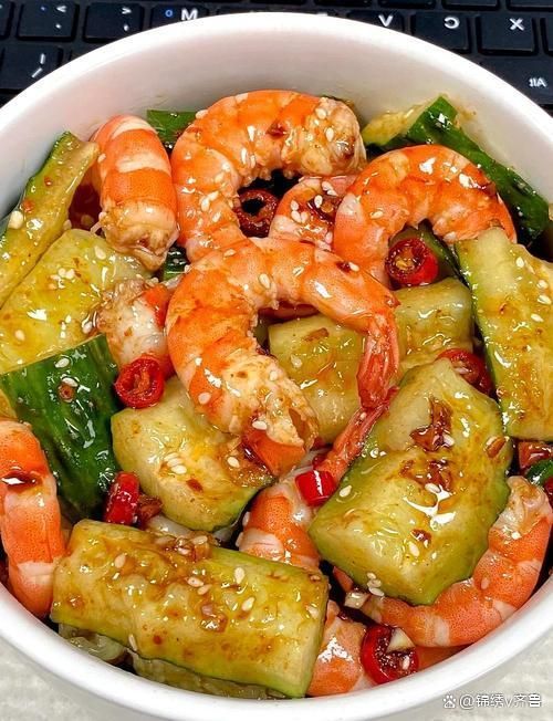 7. 拌勻裝盤:將所有食材拌勻,確保蝦仁和黃瓜充分吸收調(diào)味料,最后可以撒上切好的紅椒條增加色彩,調(diào)味后可立即享用。