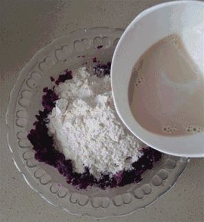 1、紫甘藍用料理機打成汁,打汁時水可以少放一些,然后紫甘藍汁加面堿變成綠色,再加入酵母粉和成綠色面團。