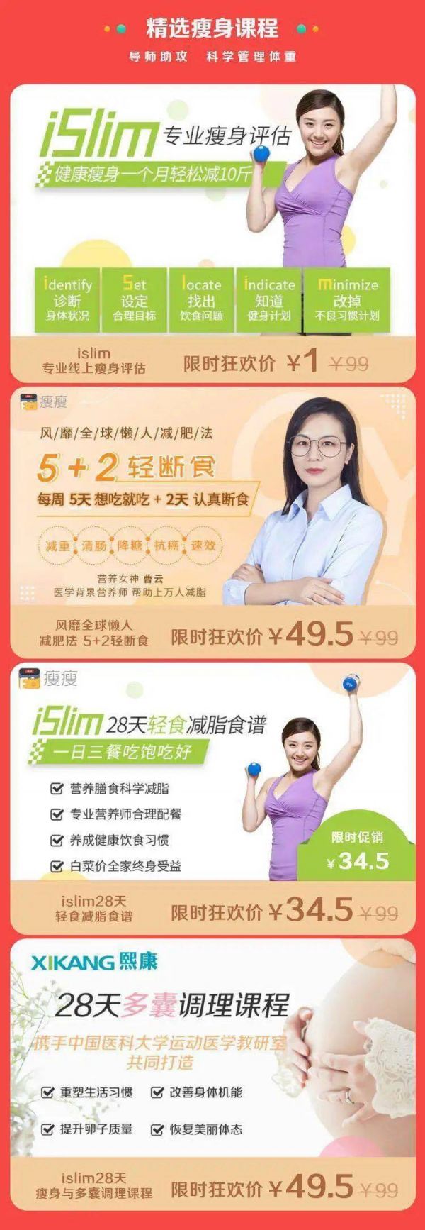 此外還有islim28天輕食減脂食譜、28天多囊調理課程,統(tǒng)統(tǒng) 5折。