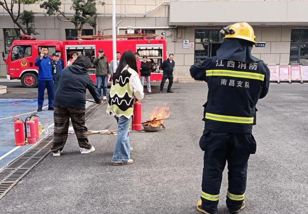 隨后,進(jìn)入實(shí)戰(zhàn)演練階段。在專業(yè)消防隊(duì)員的指導(dǎo)下,分別進(jìn)行了滅火器實(shí)操、消火栓使用訓(xùn)練。同學(xué)們自告奮勇參加實(shí)操演練。面對(duì)熊熊燃燒的模擬火源,同學(xué)們沉著冷靜,迅速而準(zhǔn)確地操作滅火設(shè)備,成功控制火勢(shì),展現(xiàn)了良好的應(yīng)急處理能力。