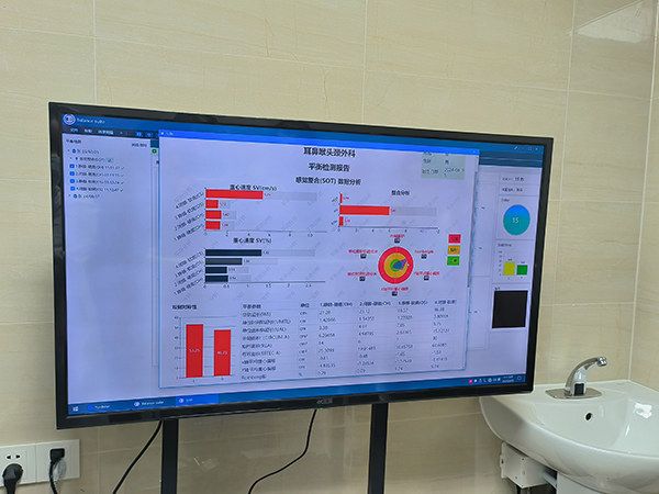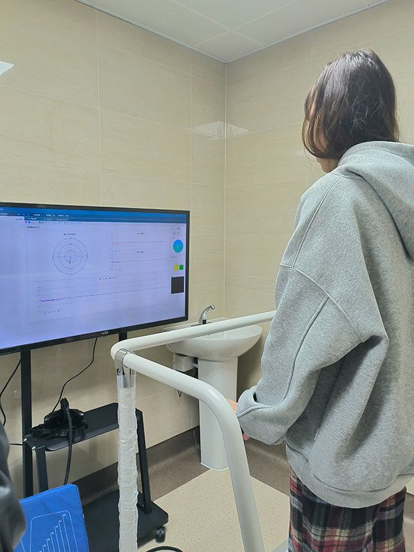 體驗者站在平衡儀上面進行訓(xùn)練平衡儀訓(xùn)練結(jié)束后會出具一份報告