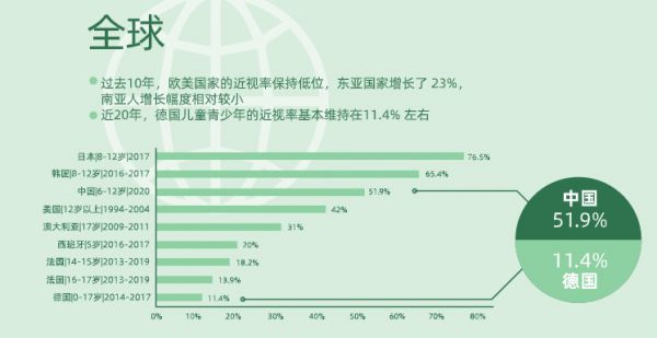 在復(fù)雜的眼健康防護系統(tǒng)工程中,歐美國家的成功經(jīng)驗值得借鑒。近10年來,歐美國家的近視率始終維持在較低水平。其中,德國近20年兒童青少年的近視率基本維持在11.4%,其顯著成果全得益于他們在眼健康防護上采取的一系列有效措施,他們秉持預(yù)防為先、干預(yù)為主、診療為輔的理念,構(gòu)建了完善的眼健康防護體系。這種科學(xué)的防護模式,為降低近視率、守護大眾眼健康發(fā)揮了重要作用。