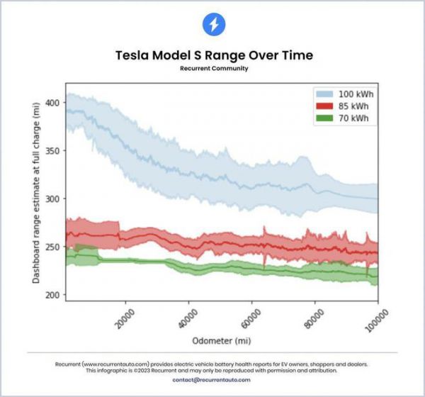 或許 Recurrent Auto 數據最利好的對象是二手電動汽車市場,許多人認為這是一個充滿風險的市場。但是,Recurrent Auto 的數據顯示,人們不必對他們想要購買的二手電動汽車的電池健康感到擔憂。