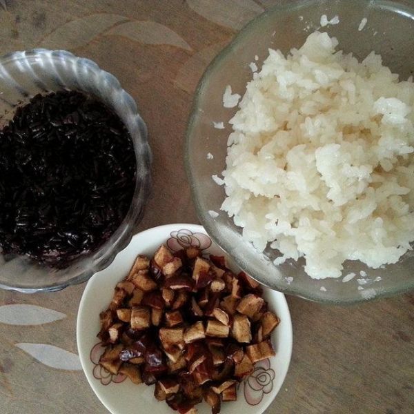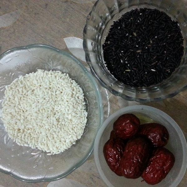 原料:糯米、黑米、紅棗、熟黑芝麻。