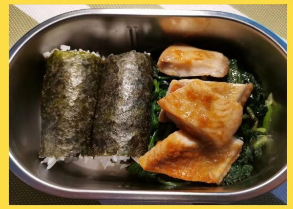 兩小卷紫菜飯,分量恰好,不多不少。再來一份涼拌菠菜,雖未加香油,卻也別有一番風(fēng)味,用普通食用油加熱后,撒上少許鹽和耗油,簡單卻美味。還有鯛魚切塊,佐以冬陰功醬清蒸,無需蔥姜蒜去腥,一樣鮮嫩可口。