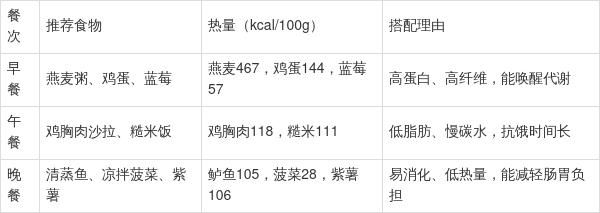 晚餐就得遵循“清淡、少量”的原則啦。我現(xiàn)在晚上都用紅薯(99千卡/100克)代替精米白面,再喝一碗豆腐番茄湯(60千卡/200克),既能補充優(yōu)質(zhì)蛋白和維生素,整道晚餐熱量也就159千卡左右,不會給腸胃造成太大負擔,還能維持夜間的基礎(chǔ)代謝。下面我給大家列個簡單的表格,看看不同餐次的推薦食物、熱量,還有搭配理由。