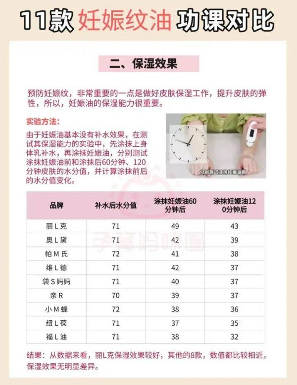 預(yù)防妊娠紋,非常重要的一點是做好皮膚保濕工作,提升皮膚的彈性,所以,妊娠油的保濕能力很重要。