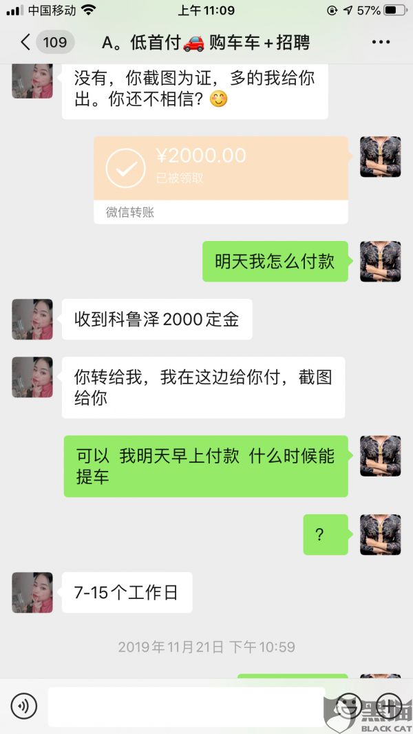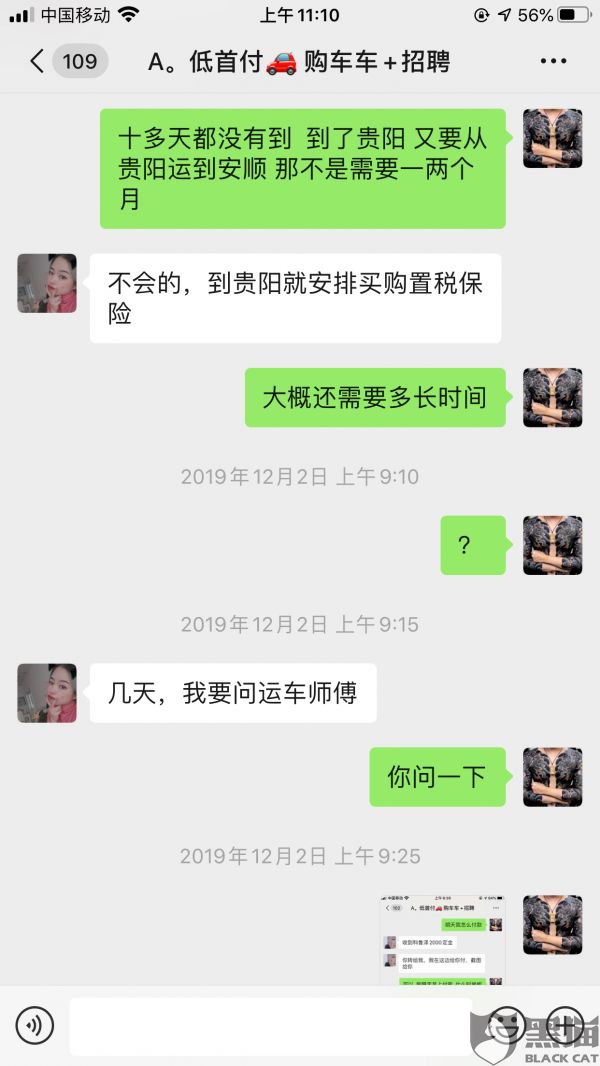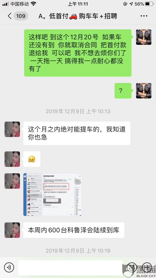 消費者“用戶7363732512”在12月29日向黑貓投訴平臺反映:“我是11月22號在他們這里買車的,當(dāng)時銷售人員說 7~15天就能提車,后來時間到了他們又說是15~25天,現(xiàn)在都一個多月了,我什么也沒有看到,他們還用各種理由推脫,我前天去他們門店,要求取消合同,他們說取消不了,說我等不了可以去上訴,我們這些小老百姓哪知道什么上訴,我現(xiàn)在只需要他們?nèi)∠贤?500我也不要了,當(dāng)初因為相信好生好車,才來他們這里看,但是結(jié)局讓我太失望了,現(xiàn)在我發(fā)信息給當(dāng)初給我辦理的銷售人員,她不回信息,打電話也不接電話,我都不知道該怎么辦了他們現(xiàn)在打電話發(fā)信息都不回,我真的不知道應(yīng)該怎么辦了,我上去他們店里他們只會說等不了可以去上投訴,我能去哪里上投訴,我打電話110報警,警察說這個他們管不了,我只能明天去當(dāng)?shù)氐墓ど叹滞对V看看了?!?/p>
