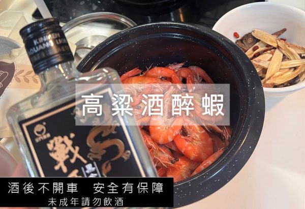 高粱醉蝦:全酒版的蝦子香氣相當濃郁,食用後建議不要開車、駕駛動力機械。