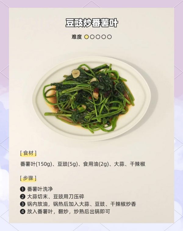 由于豆豉自帶咸味,因此在制作豆豉炒番薯葉時,無需額外添加鹽分。挑選番薯葉時,應優(yōu)先選擇那些外觀完整、顏色鮮亮的葉片,這樣的番薯葉口感更佳,美味無窮。愿您的周末充滿美食的愉悅!