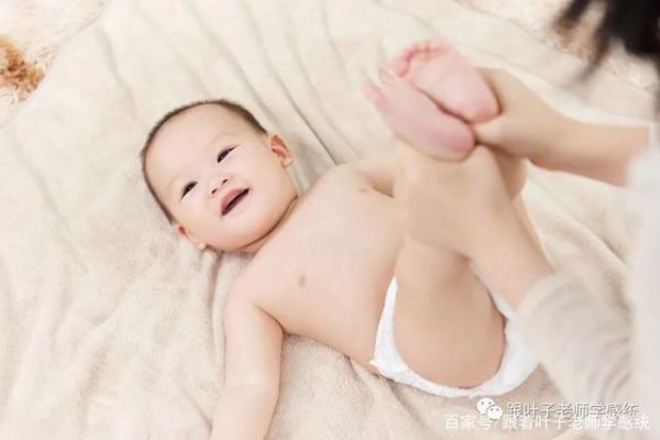 讓寶寶平躺,媽媽握住寶寶的腳踝。先將寶寶的左腳上下?lián)u一次,再將寶寶的右腳上下?lián)u一次,雙腳如同打水狀。