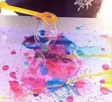 紙上滴幾滴顏料,在上方吹泡泡,看看會發(fā)生什么奇妙的反應(yīng)?