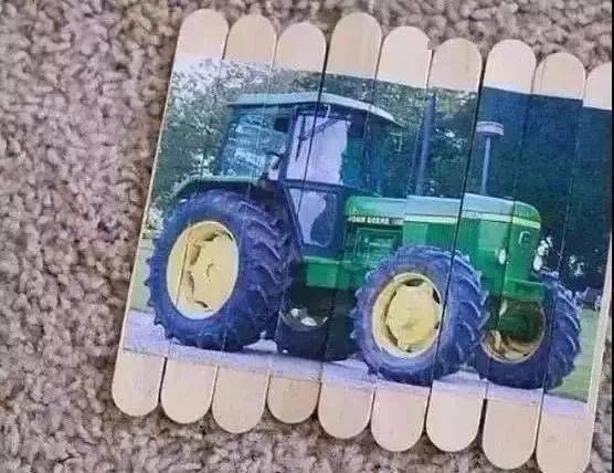 雪糕棒拼在一起,用膠水粘貼上照片,再把雪糕棒打散,簡易的拼圖游戲就可以玩起來了~