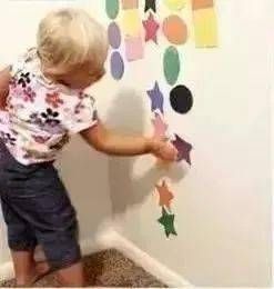 在墻上畫好各種形狀,然后讓孩子分類粘貼。
