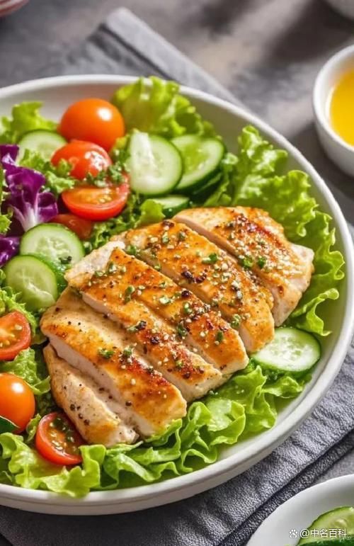 做法:把各種蔬菜洗凈切好,放入碗中備用。雞胸肉洗凈,用廚房紙擦干水分,在兩面劃幾刀,撒上鹽、黑胡椒,腌制 15 分鐘。烤箱預熱至 200℃,將雞胸肉放入烤箱烤 15 - 20 分鐘,至表面金黃熟透,取出切塊。將橄欖油、醋混合,加入少許鹽和黑胡椒,制成沙拉汁,倒入蔬菜中,與雞胸肉一起拌勻。