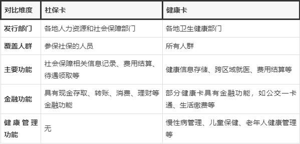 社??ê徒】悼m然都是為了方便居民生活而設(shè)計的卡片,但它們在功能、用途和覆蓋人群等方面存在顯著差異。社保卡主要用于社會保障相關(guān)信息的記錄和管理,而健康卡則主要用于健康信息的記錄和管理。兩者不能相互替代,居民在使用時應根據(jù)實際需求選擇合適的卡片。